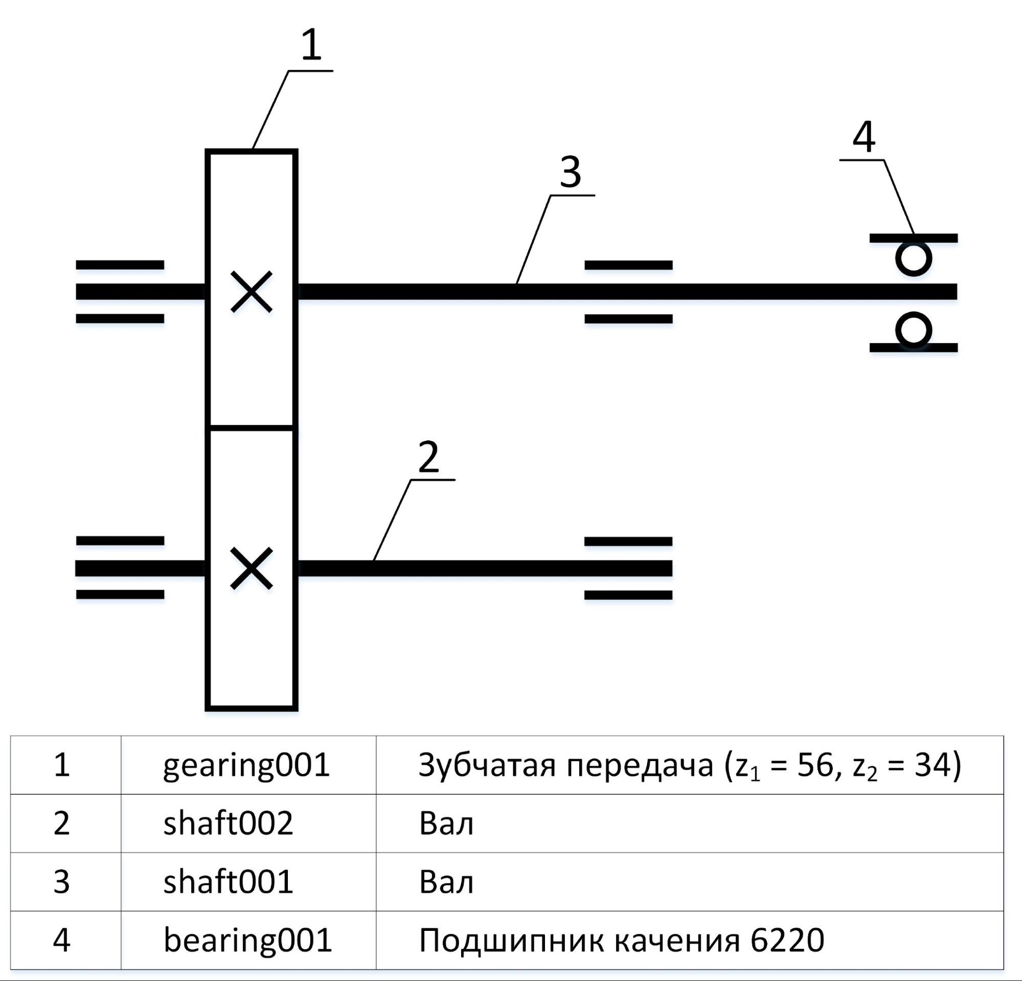 Кинематическая схема содержит информацию о конструкции оборудования и служит для формирования пространства информативных признаков его технического состояния. Пример кинематической схемы приводится на рисунке 11.